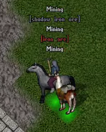 <overheadmessage searchtext="You dig some shadow iron ore and put it in your backpack." message="{4} {5} {6}" hue="2406" />